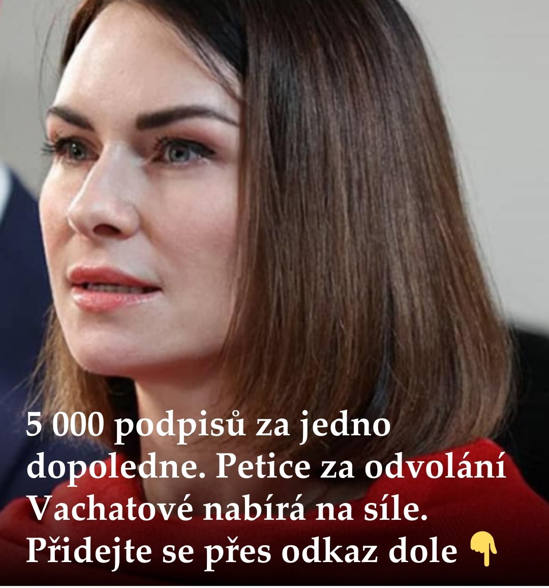 My, níže podepsaní občané České republiky, tímto vyjadřujeme vážné znepokojení nad působením Natálie Vachatové na pozici poradkyně předsedy vlády a vyzýváme k jejímu neprodlenému odvolání.